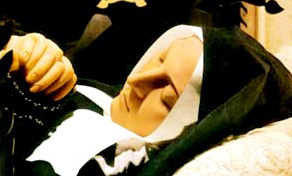 |  | Foto vom Reliquienschrein der hl. Bernadette Soubirous in Nevers mit dem unverwesten Leib, Foto 1999, Hochgeladen von Marina Genger, Wikimedia Commons |